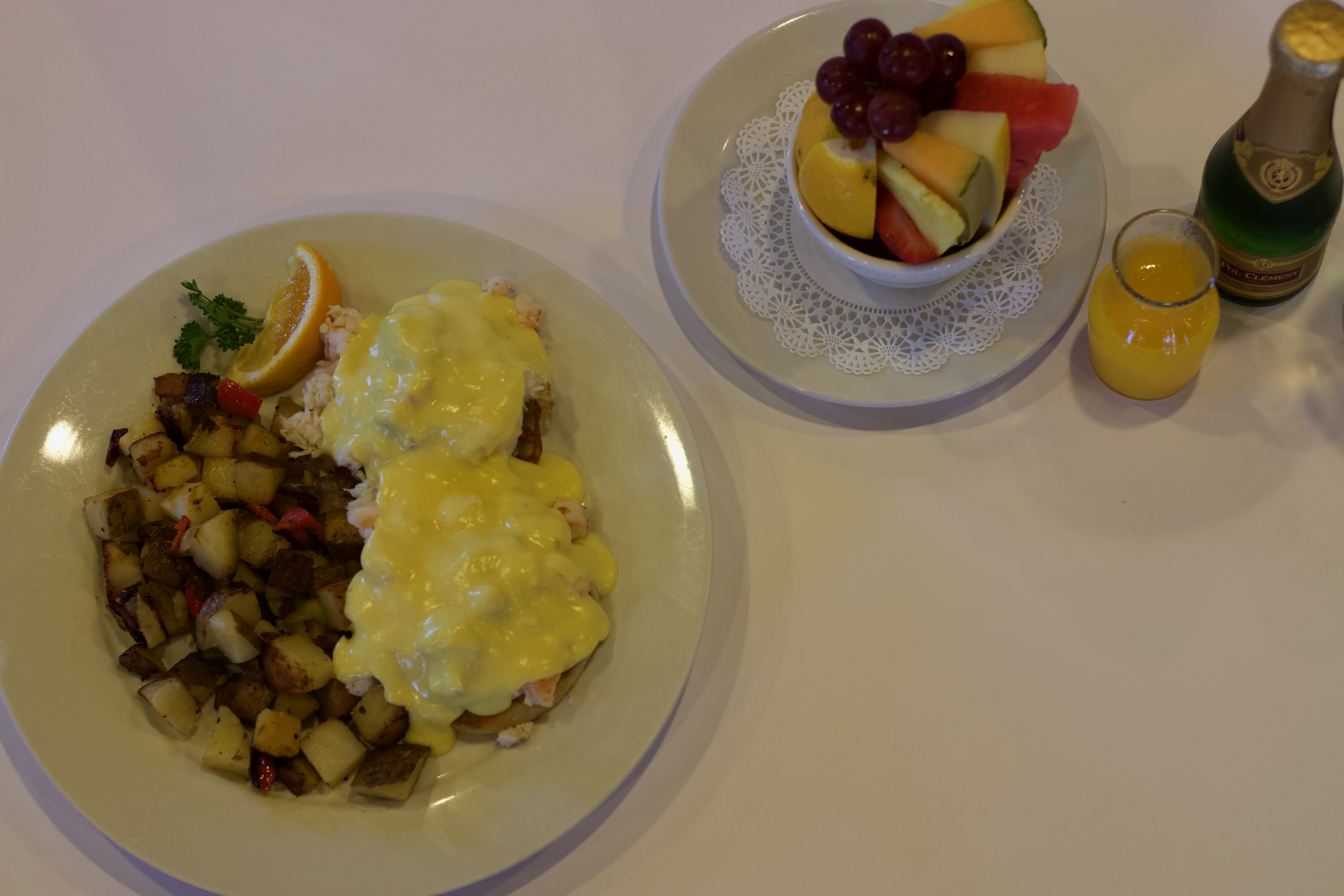 Brunch BRUNCH BRUNCH MENU Brunch BRUNCH Springside Brunches includes fresh fruit and your choice of one beverage: Coffee, Iced Tea, Champagne (One Glass Only), Mimosa, or Small Juice $18.95 EGGS BENEDICT Poached eggs over sliced Ham on an English muffin. Topped with delicious Hollandaise sauce. Served with homestyle potatoes. $18.95 EGGS FLORENTINE Poached eggs over Bacon on an English muffin. Topped with fresh Spinach, sliced tomatoes & delicious Hollandaise sauce. Served with homestyle potatoes.. $18.95 EGGS LORRAINE Eggs scrambled with Cream Cheese, green onions & Bacon, served over Avocado slices. Served with Muffins, Biscuit or Toast and homestyle potatoes. $18.95 EGGS SONORA Poached eggs over sliced Ham on an English muffin. Topped with Avocado slices & Hollandaise sauce. $18.95 APRICOT FRENCH TOAST Apricot Preserves & Whipped Cream Cheese layered between Sourdough Bread and topped with powdered sugar, making this a special delight. Served with bacon or sausage. $18.95 Benedict Alaska Poached eggs over a combination of Crab & Shrimp. All this on an English muffin with delicious Hollandaise sauce. Served with homestyle potatoes $20.95 Seafood Omelet Shrimp, Crab & Jack Cheese in a three egg omelet, topped with Sour Cream or Hollandaise sauce. Served with a Muffin, Biscuit or Toast and homestyle potatoes $20.95 Our Seafood Brunch Benedict Alaska Poached eggs over a combination of Crab & Shrimp. All this on an English muffin with delicious Hollandaise sauce. Served with homestyle potatoes $20.95 Seafood Omelet Shrimp, Crab & Jack Cheese in a three egg omelet, topped with Sour Cream or Hollandaise sauce. Served with a Muffin, Biscuit or Toast and homestyle potatoes $20.95